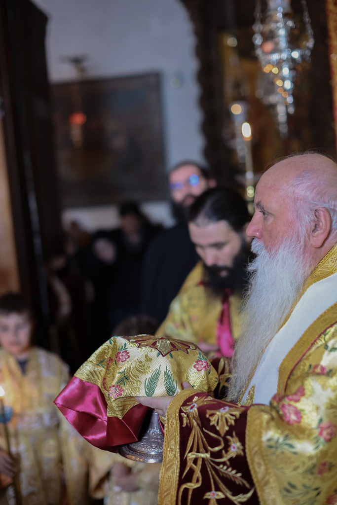 Ја користам оваа прилика на епископот Партениј, игуменот на оваа свештена обител, да му го честитам именденот, а по повод празникот на св. Партениј Лампсакиски. Да му посакаме здравје и спасение, духовно издигнување, а за полза на братството и сестринството и на нашиот благочестив народ. Нека послужи за афирмација на МПЦ-ОА, за просперитет на оваа свештена обител и за спасение на неговата душа. Исполаети деспота. Амин!